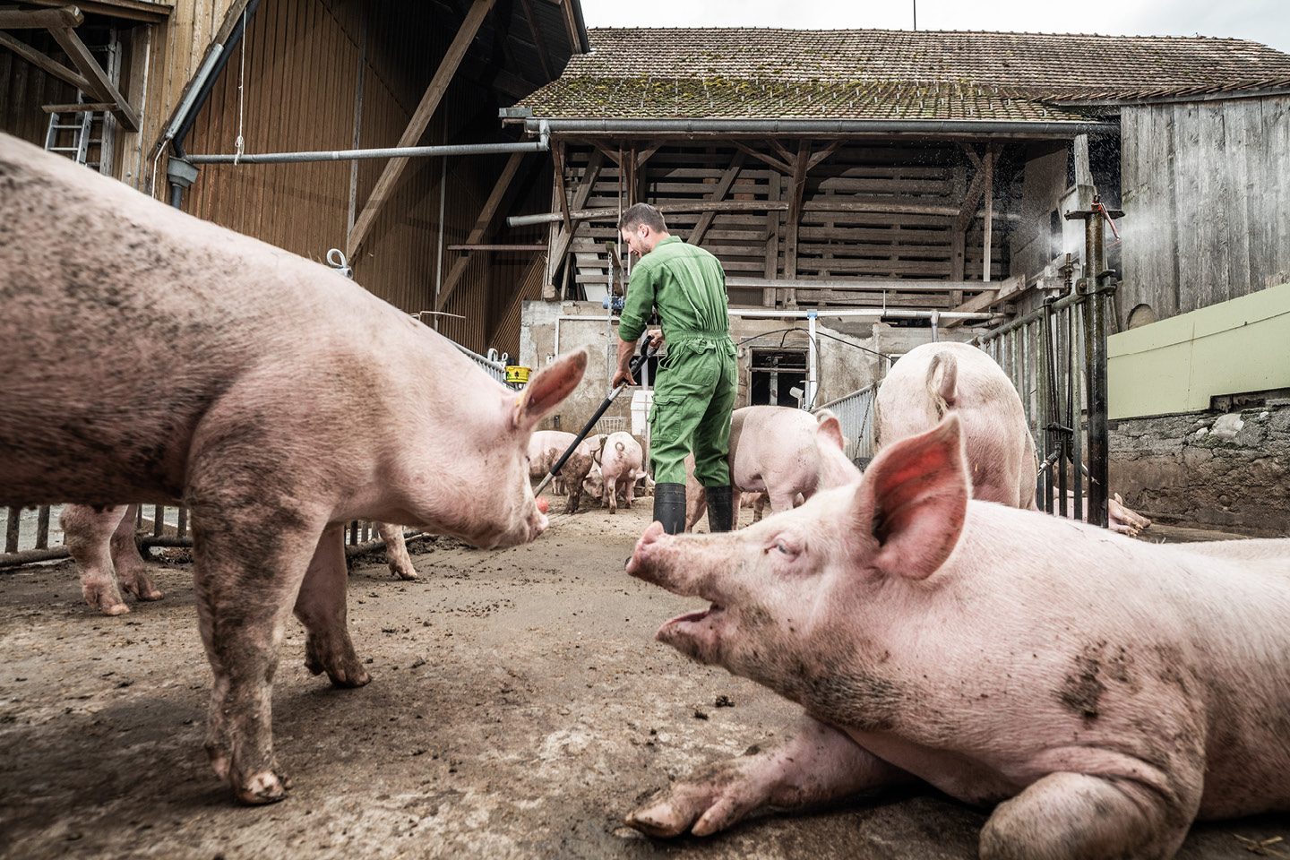 Geselliges Treiben vor dem Schweinestall.
