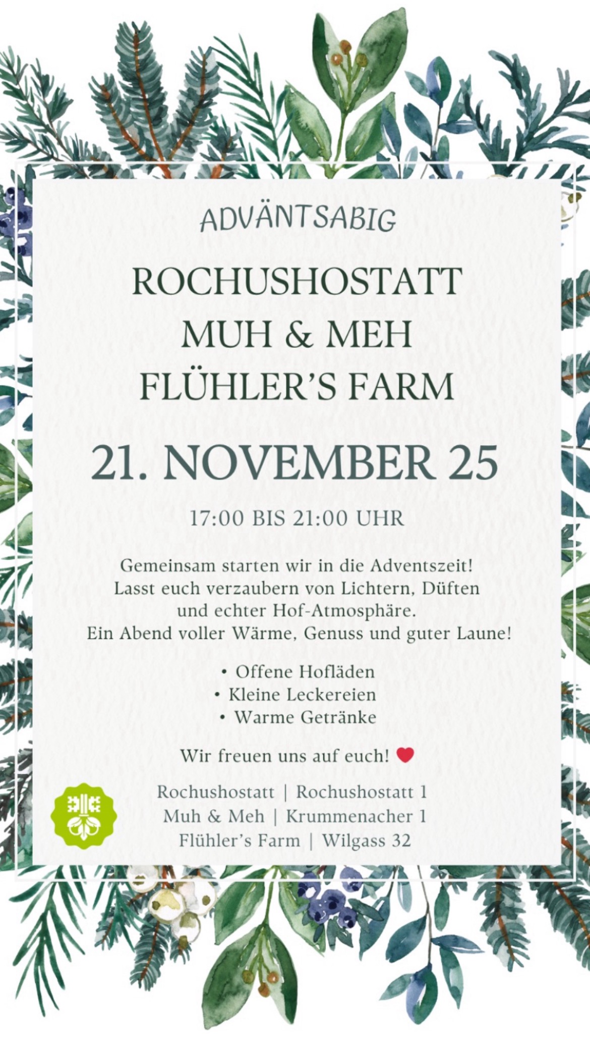 Zieht euch warm an und schaut bei allen drei Hofläden vorbei – Rochushostatt, Muh & Meh und Flühler’s Farm laden euch herzlich ein.